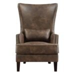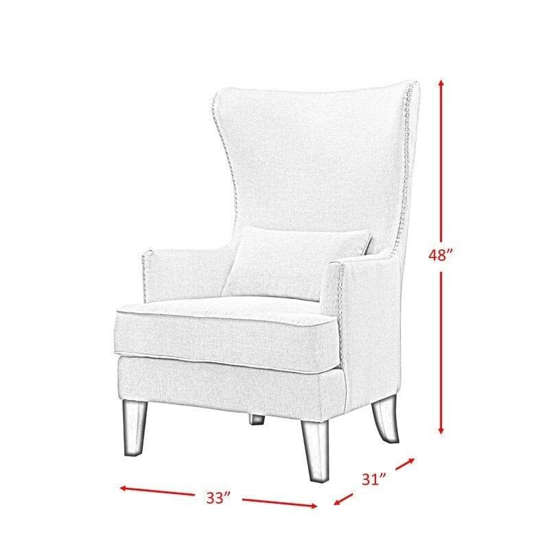 Description: This beautiful armchair has the look of history yet a modern comfort. There is comfort and style due to the solid wood frame and polyester upholstery. The cushion composition (foam and feather) with springs creates a comfortable, supporting seat that makes you feel like you are sitting on a cloud. The tight back offers a sophisticated look of upholstery care, and the studded trim offers additional pop. Available in many vibrant colors, this chair fits in any living space and comes with a colorful pillow.