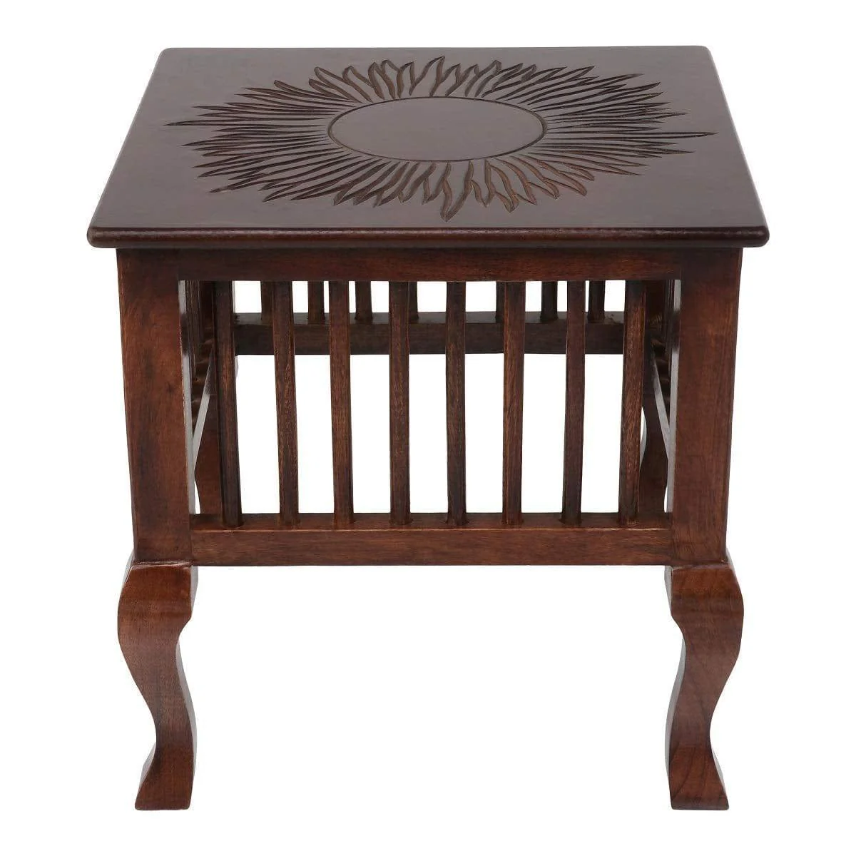 This Wooden Stool is a versatile and stylish addition to any room in your home. With its classic design and natural wooden brown finish, it can function as an end table, chair side table, stool, small coffee table base, or plant stand. Perfect for both indoor and outdoor use, this stool features a handcrafted square design with a walnut finish and intricate carvings on the top, adding a touch of elegance to your décor. The stool’s compact size makes it ideal for smaller spaces, providing a functional and attractive surface without overwhelming the room.