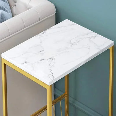 Add a touch of elegance and practicality to your living space with the Lynet Rectangular Sofa Side Table. Crafted with a durable iron frame finished in glossy gold, this table features a luxurious white marble top that exudes sophistication. Its minimalist yet stylish design makes it an ideal accent piece for modern or vintage-inspired interiors.